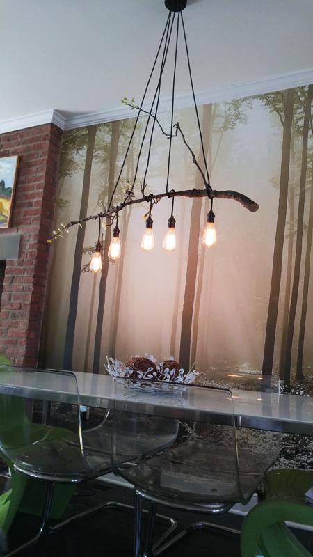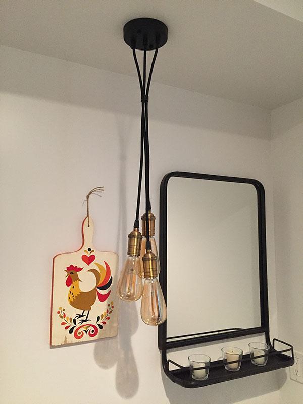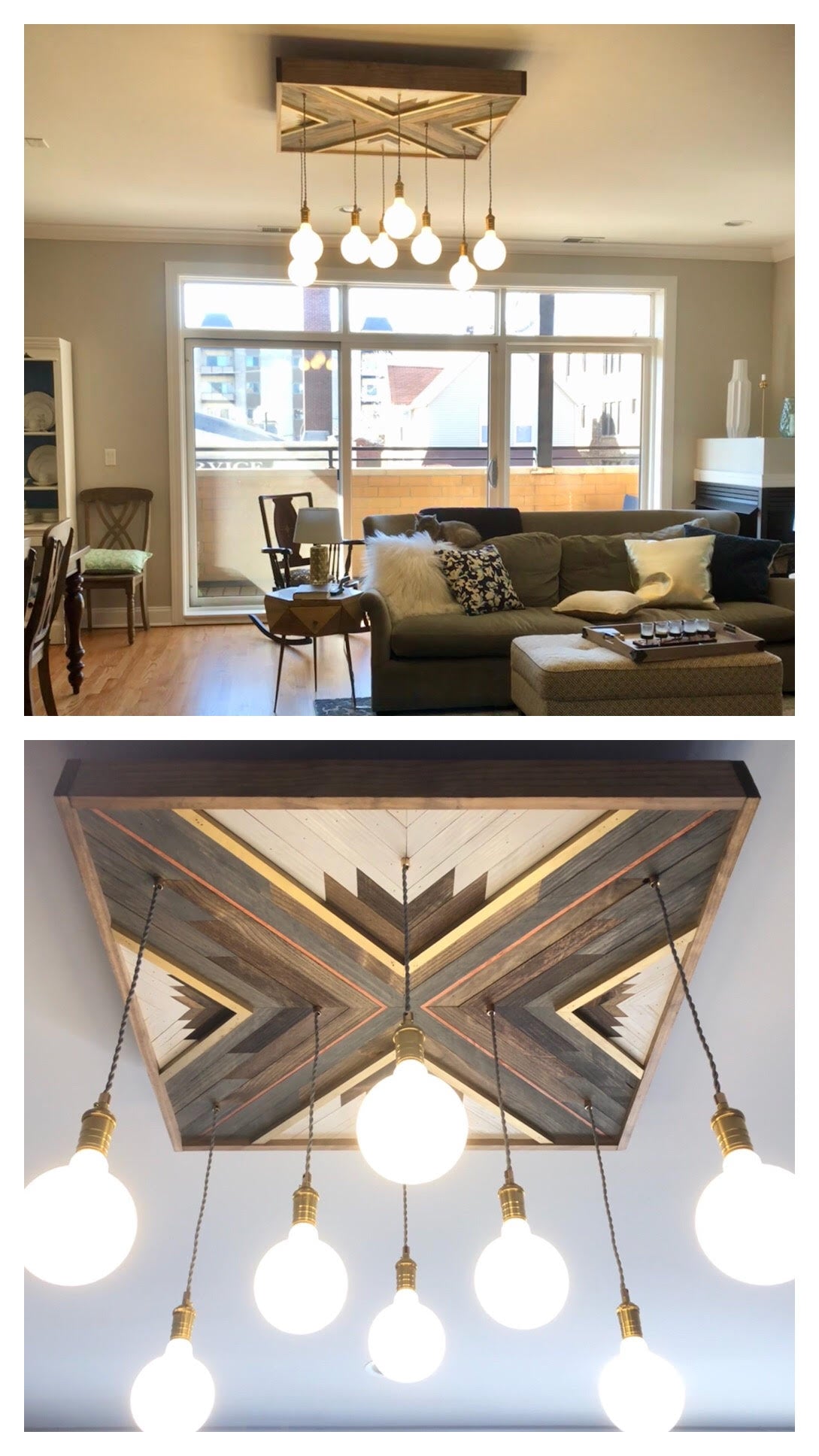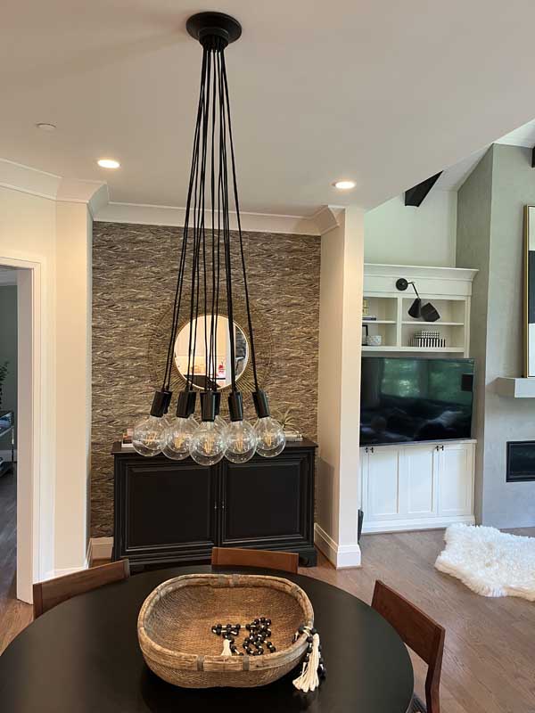 6 Pendant Custom Wood Chandelier with specialty bulbs