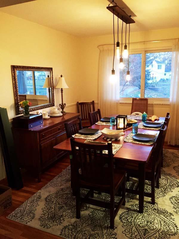14 Pendant Reclaimed Wood Chandelier over Dining Room Table